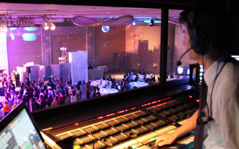 電音エンジニアリングが、ホテルに常駐しながら数多く手掛けているのがウェディングの演出です。最新の技術を駆使して、新郎新婦やそのご家族、ゲストの皆様の思い出に残るウェディングを実現します。