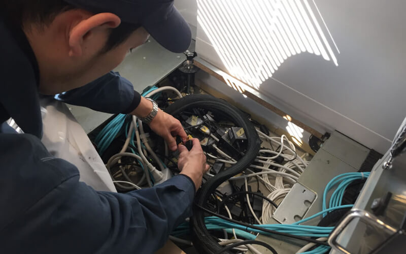 音・光・映像の設備をいつでも安心して利用してもらうために欠かせないのが、機器の点検整備。システムの清掃などのメンテナンスや消耗品の確認はもちろん、仮に問題が発生してもその原因を早期発見し、対応します。